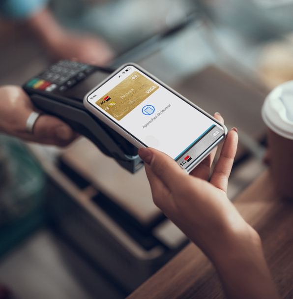 Payer vos achats avec votre iPhone(5), sans contact ni carte physique, grâce à Apple Pay en conservant les avantages de votre carte bancaire(10) SG de la gamme Visa ou Mastercard.